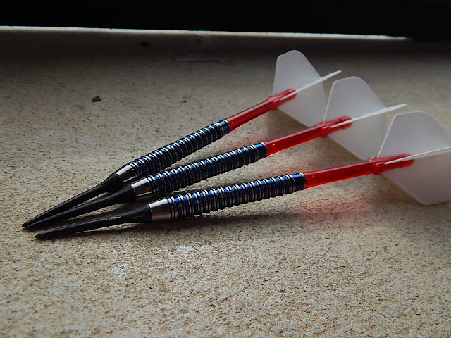 It's basically a straight barrel dart with a slightly tapered front. Just enough to feel the taper for a consistent grip, but small enough to not obscure the target. "Goldilocks!". After 4 weeks. They seem to get grippier with wear. I find them to be some of my favorite darts. Try them out at Horizon Dart Co. along with many others. It's a real blessing to have a place in Kansas City where you can try out all kinds of darts